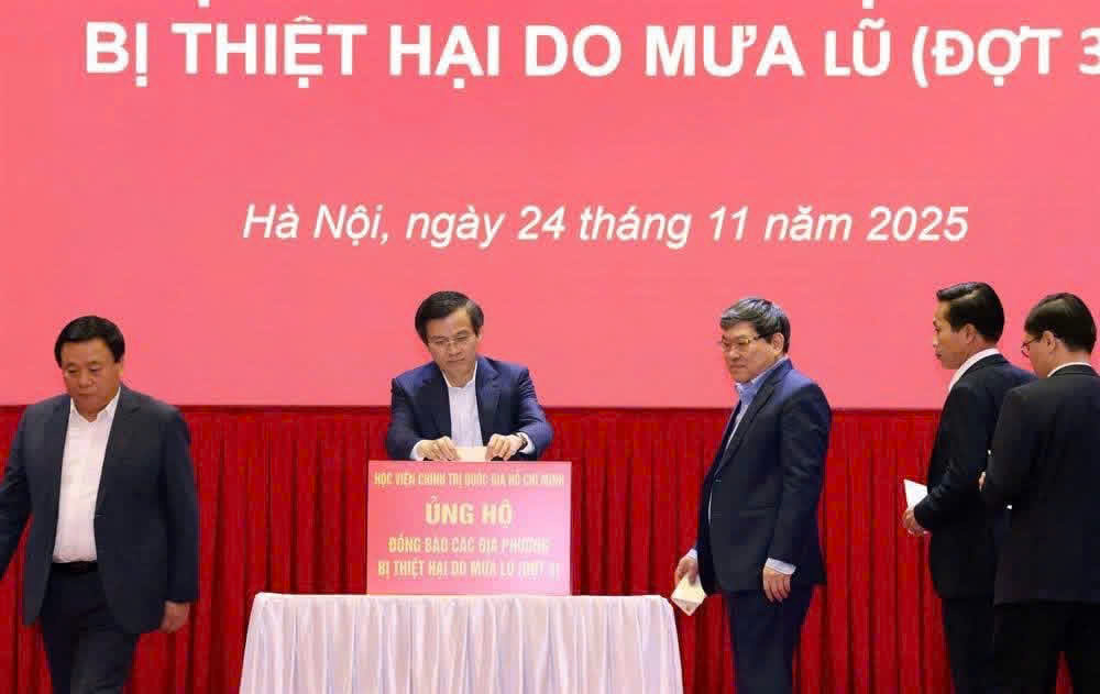 9. Học viện làm tốt công tác an sinh xã hội, phát huy truyền thống tương thân, tương ái. Trong thời gian ngắn, Học viện đã phát động ba đợt vận động toàn thể cán bộ, giảng viên, học viên chung tay góp sức ủng hộ, thể hiện rõ trách nhiệm xã hội, tinh thần nhân văn và tình cảm sẻ chia đối với những khó khăn, mất mát to lớn của nhân dân tại những địa phương bị ảnh hưởng do thiên tai.