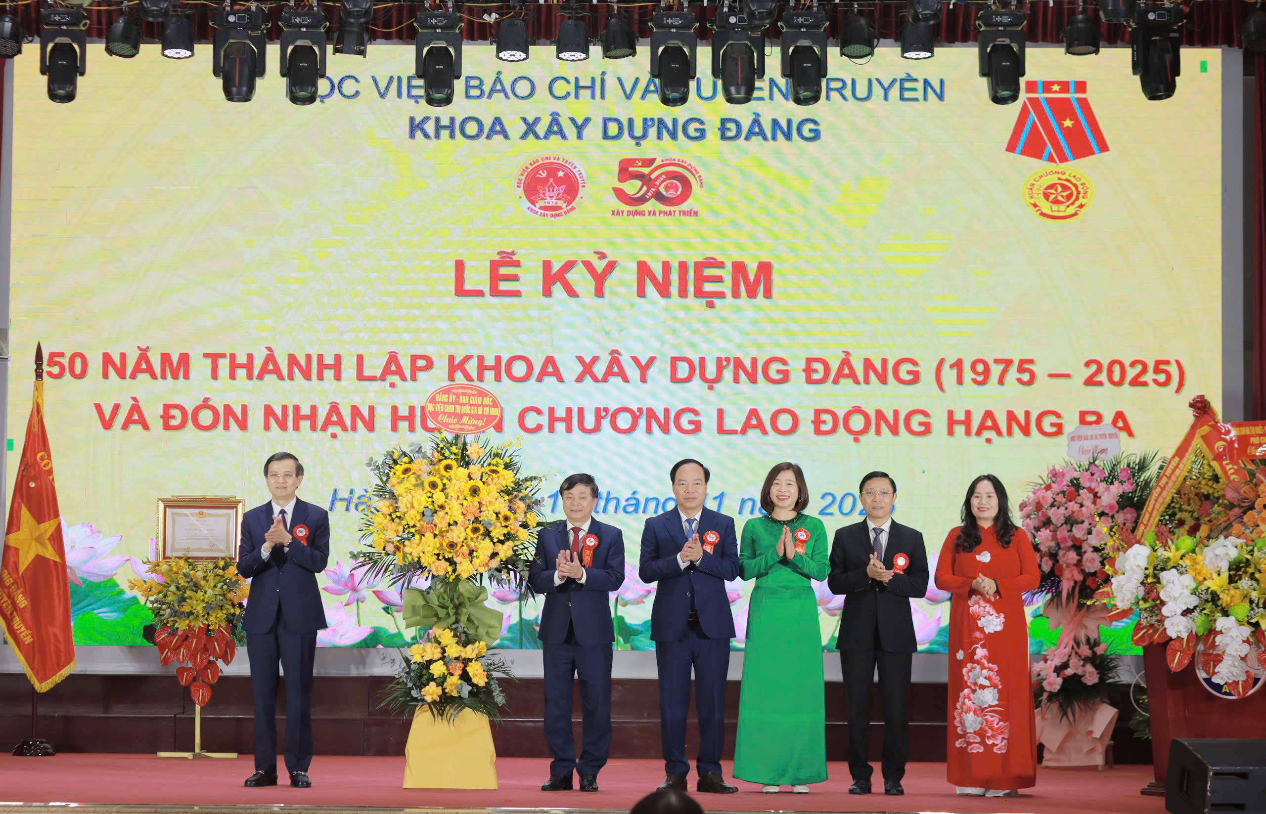 PGS, TS. Đoàn Minh Huấn tặng hoa Học viện Báo chí và Tuyên truyềnPhát biểu tại Lễ kỷ niệm, PGS, TS. Phạm Minh Sơn, Giám đốc Học viện Báo chí và Tuyên truyền nhấn mạnh: “50 năm là một mốc son chói lọi, là niềm tự hào của khoa Xây dựng Đảng thuộc Học viện Báo chí và Tuyên truyền. Khoa Xây dựng Đảng đã hoàn thành xuất sắc sứ mệnh lịch sử của mình, xứng đáng với sự tin cậy của Đảng và nhân dân để tiếp tục vươn mình phát triển lên tầm cao mới”.