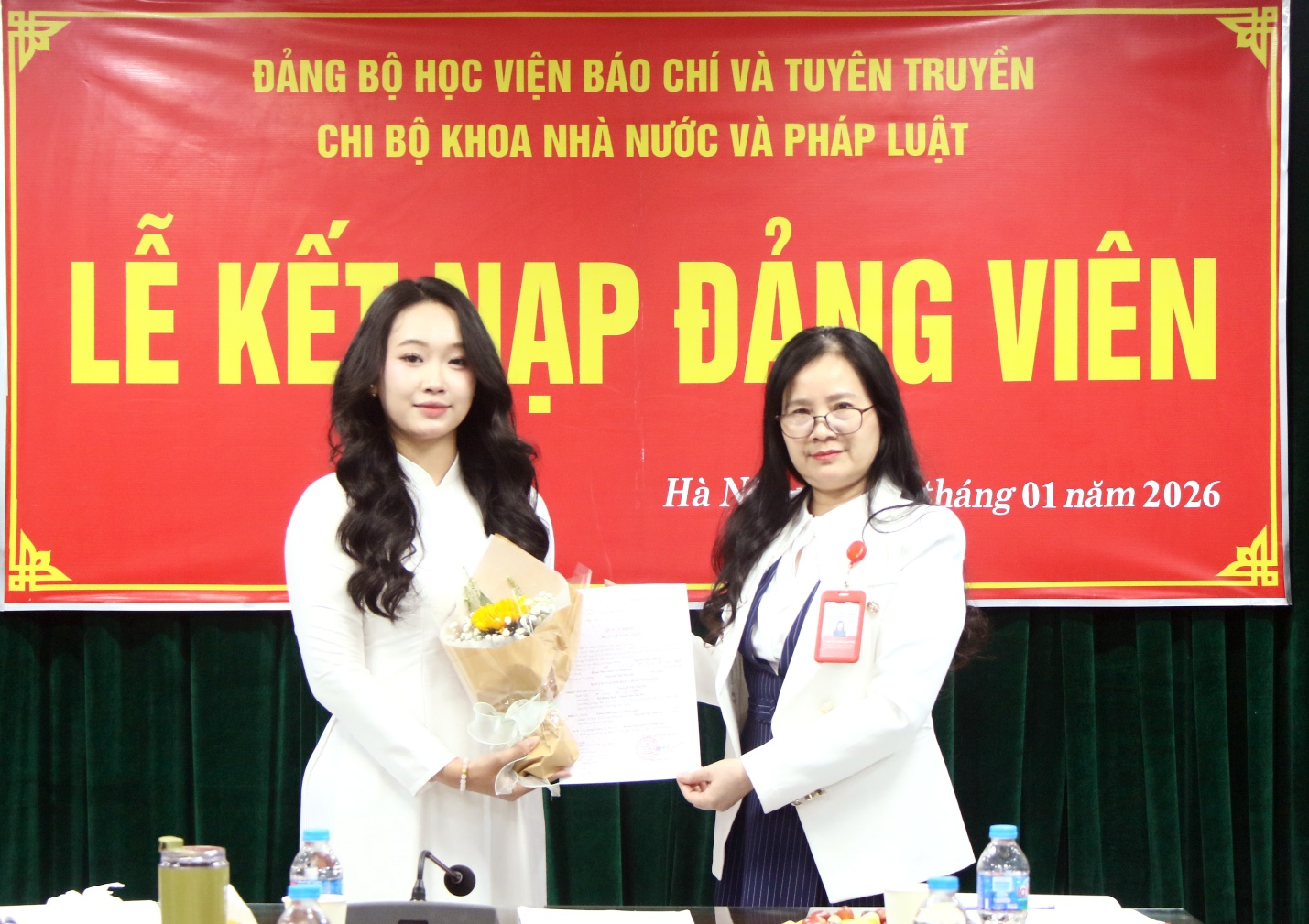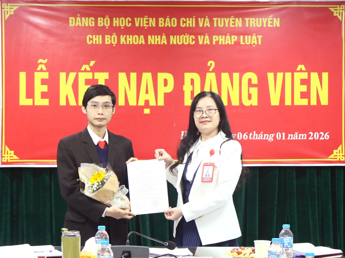 Chiều 06/01/2026, Chi bộ Khoa Nhà nước và Pháp luật long trọng tổ chức Lễ kết nạp Đảng viên cho 04 Quần chúng ưu tú theo Quyết định của Ban Thường vụ Đảng ủy Học viện Báo chí và Tuyên truyền.