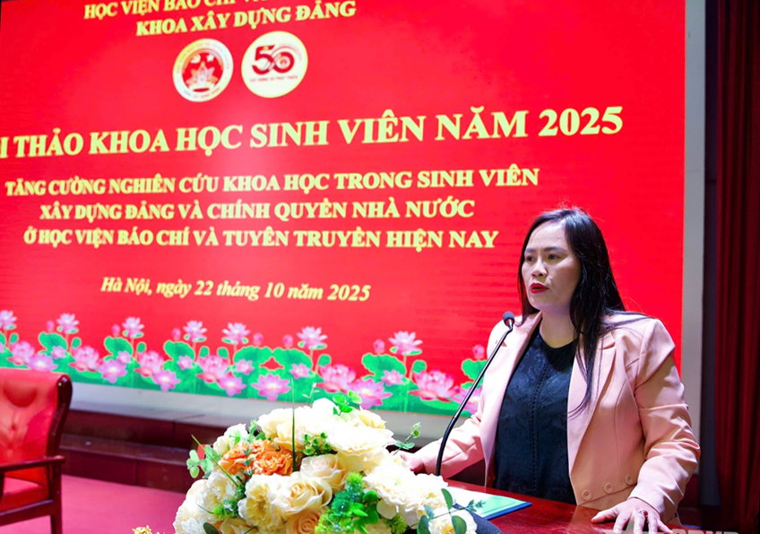 Chiều 22/10/2025, tại Hội trường lớn, Khoa Xây dựng Đảng đã tổ chức thành công Hội thảo khoa học sinh viên với chủ đề: “Tăng cường nghiên cứu khoa học trong sinh viên Xây dựng Đảng và Chính quyền Nhà nước ở Học viện Báo chí và Tuyên truyền hiện nay”.