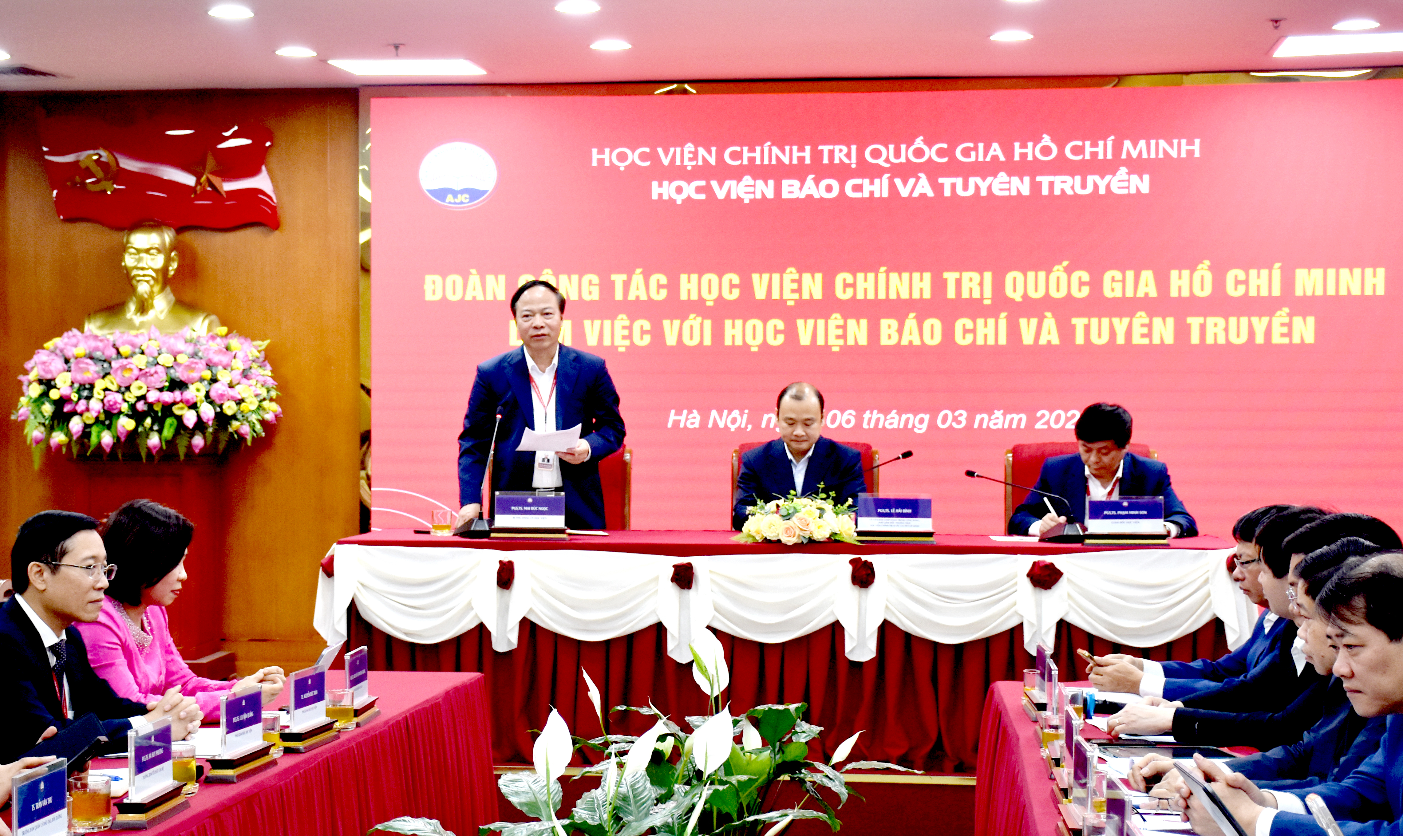 Đoàn công tác Học viện Chính trị quốc gia Hồ Chí Minh làm việc với Học viện Báo chí và Tuyên truyền