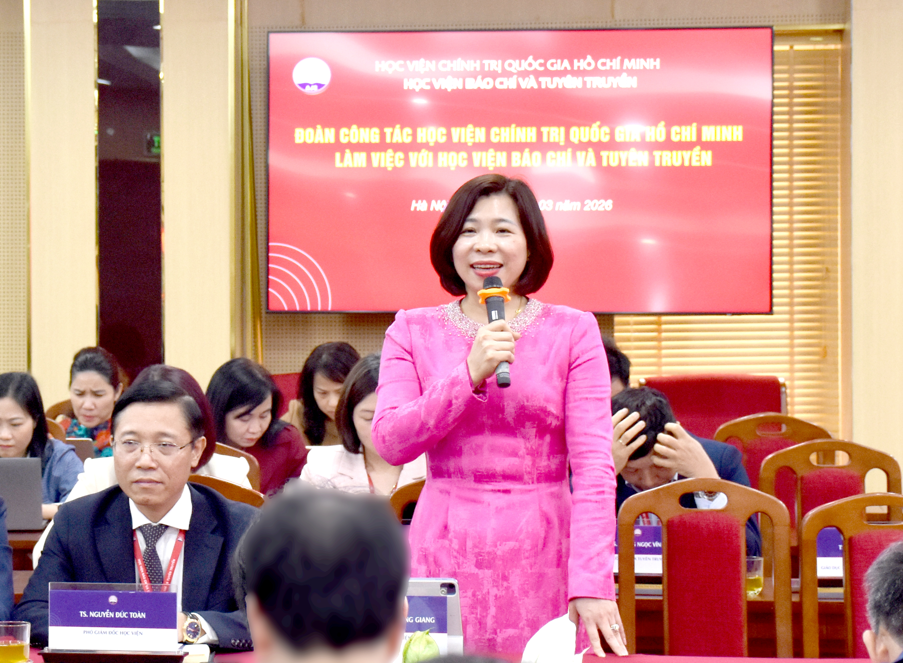 Tại buổi làm việc, các đại biểu Học viện Báo chí và Tuyên truyền đã trao đổi, nêu một số kiến nghị nhằm nâng cao chất lượng đào tạo, nghiên cứu khoa học và phương hướng phát triển Học viện trong thời gian tới.