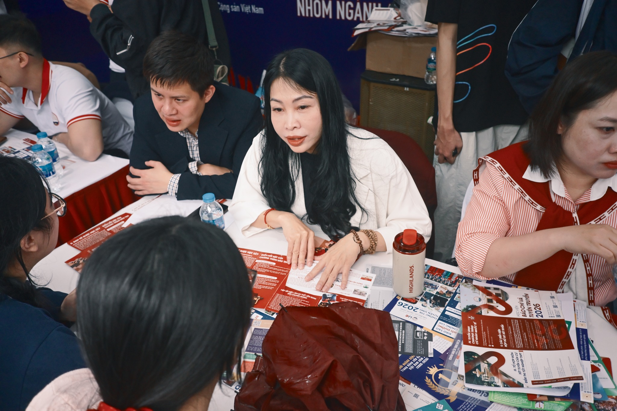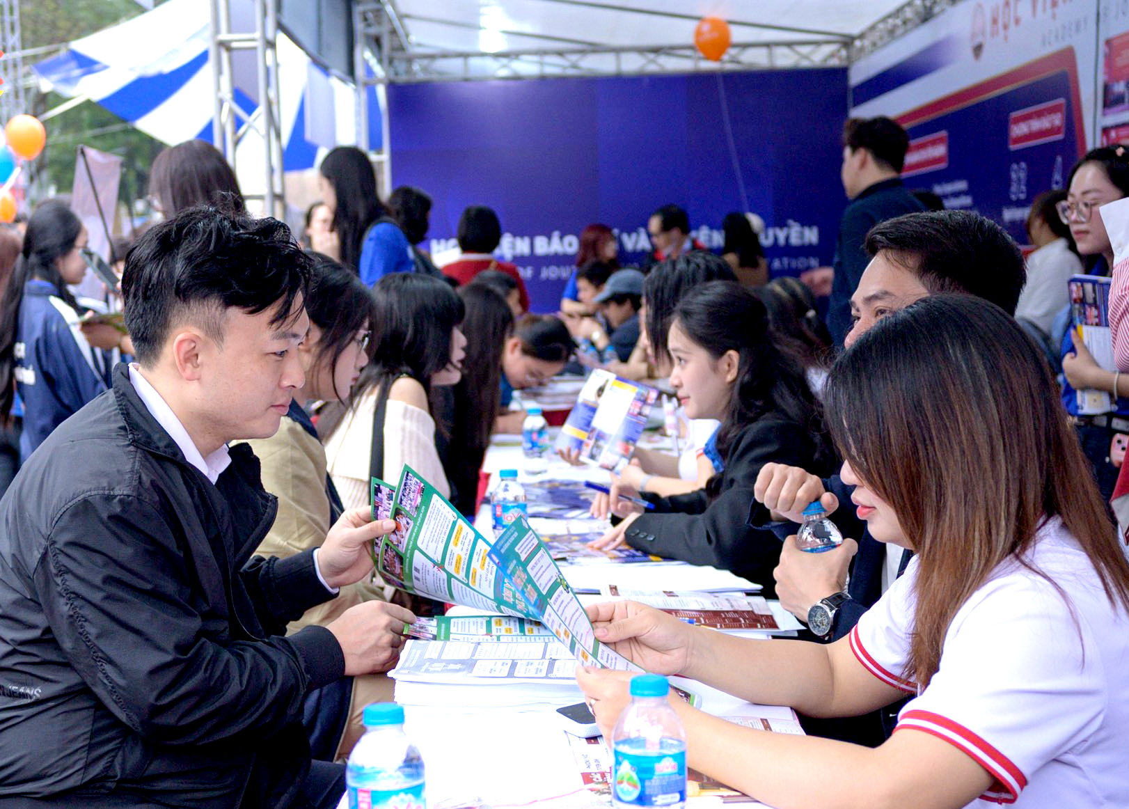 Tại khu vực tư vấn của Học viện Báo chí và Tuyên truyền, các thầy cô và sinh viên đã giới thiệu khái quát về nhà trường, cung cấp thông tin về Đề án tuyển sinh năm 2026, các ngành và chuyên ngành đào tạo, các chương trình đào tạo chất lượng cao và chương trình cử nhân quốc tế. Nhiều thắc mắc của học sinh liên quan đến phương thức xét tuyển, môi trường học tập, cơ hội nghề nghiệp sau khi tốt nghiệp cũng được giải đáp cụ thể, giúp các em có thêm cơ sở lựa chọn ngành học phù hợp.