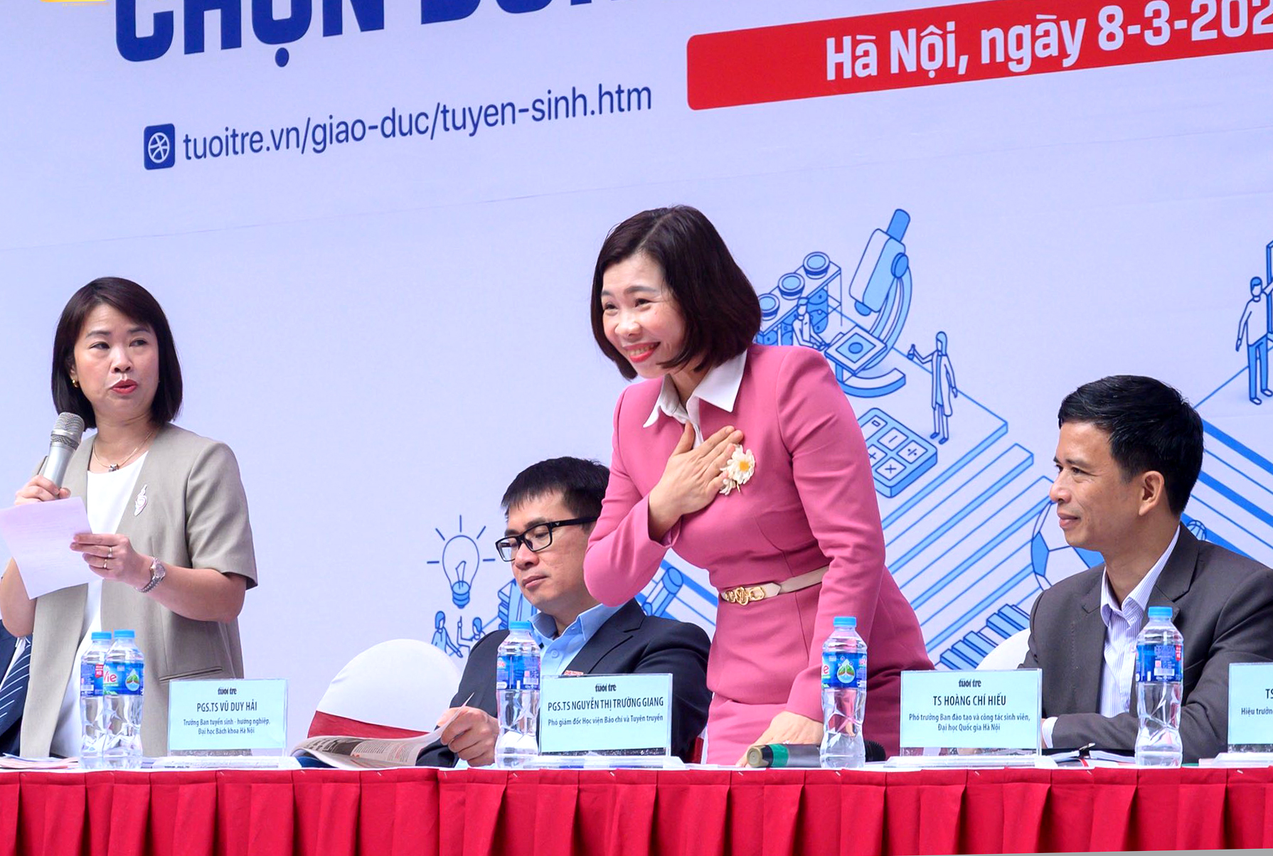 PGS,TS. Nguyễn Thị Trường Giang, Phó Giám đốc Học viện tham gia tư vấn, giải đáp cho thí sinh trong Chương trình tư vấn "Hiểu đúng mình - Chọn đúng nghề - Đi đúng hướng" tại Ngày hội
