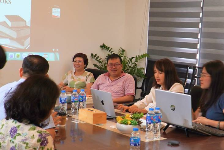 Đại biểu hai đơn vị chụp ảnh lưu niệm tại Công ty Alpha Books.