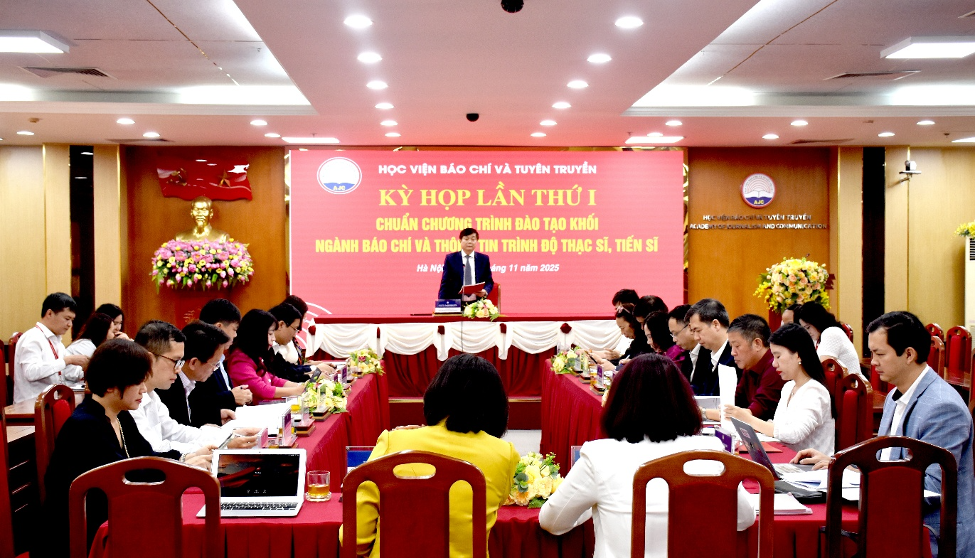 Chiều 14/11/2025, tại Hà Nội, Học viện Báo chí và Tuyên truyền tổ chức Kỳ họp thứ Nhất của Hội đồng tư vấn xây dựng Chuẩn chương trình đào tạo khối ngành Báo chí và thông tin trình độ thạc sĩ, tiến sĩ. Đây là bước khởi động quan trọng nhằm hoàn thiện hệ thống chuẩn chương trình theo đúng tiến độ Bộ Giáo dục và Đào tạo giao.