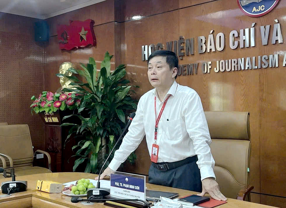 PGS, TS. Phạm Minh Sơn, Giám đốc Học viện Báo chí và Tuyên truyền, chủ trì Hội thảo. Đồng chủ trì có TS. Nguyễn Thúy Hà, Giám đốc Trung tâm Khảo thí và Đảm bảo chất lượng đào tạo.