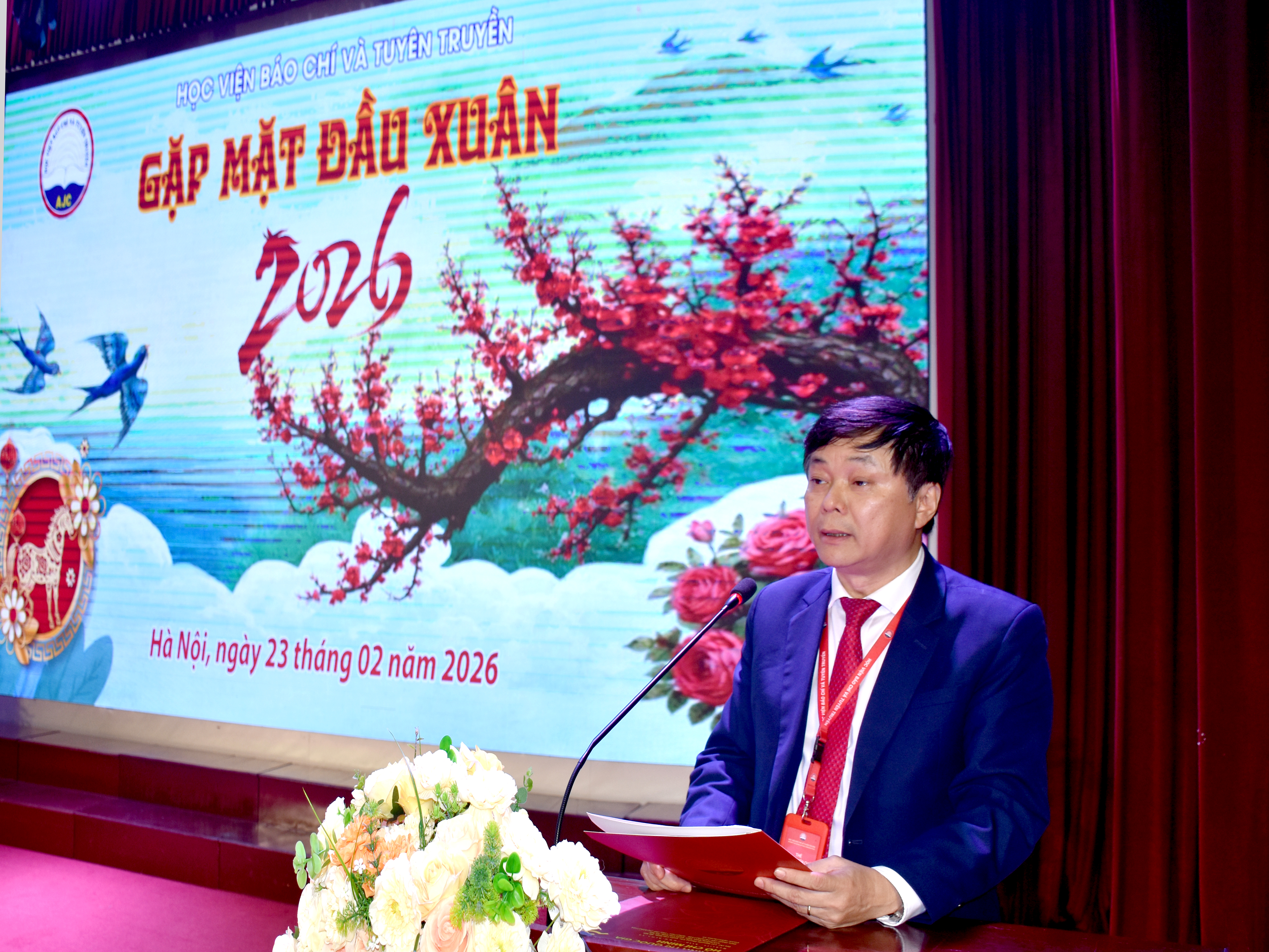 Sáng 23/2/2026 (mùng 7 Tết), Học viện Báo chí và Tuyên truyền long trọng tổ chức Chương trình Gặp mặt toàn thể cán bộ, viên chức và người lao động nhân dịp Xuân Bính Ngọ 2026.
