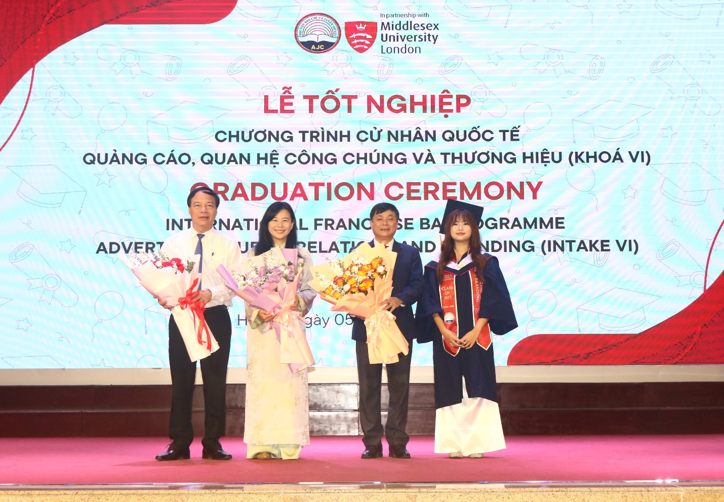 Đại diện sinh viên Chương trình Cử nhân quốc tế Quảng cáo, Quan hệ công chúng và Thương hiệu khóa VI tặng hoa tri ân Ban Lãnh đạo Học viện Báo chí và Tuyên truyền và đại diện Đại học Middlesex
