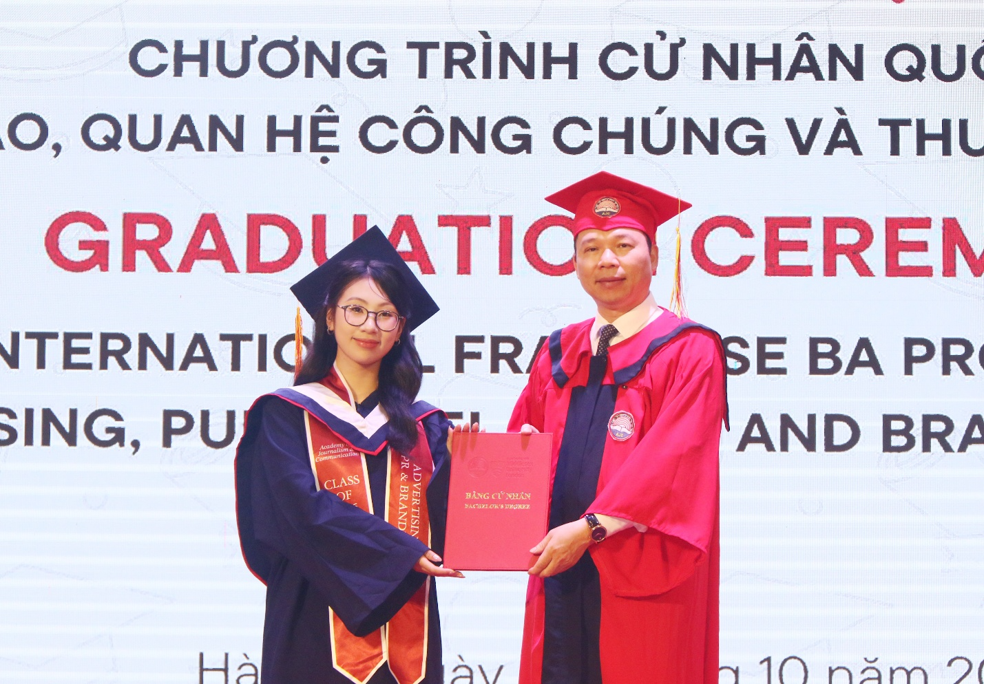 TS. Nguyễn Đức Toàn, Phó Giám đốc Học viện trao Bằng tốt nghiệp cho các tân cử nhân Chương trình Cử nhân quốc tế Quảng cáo, Quan hệ công chúng và Thương hiệu khóa VI