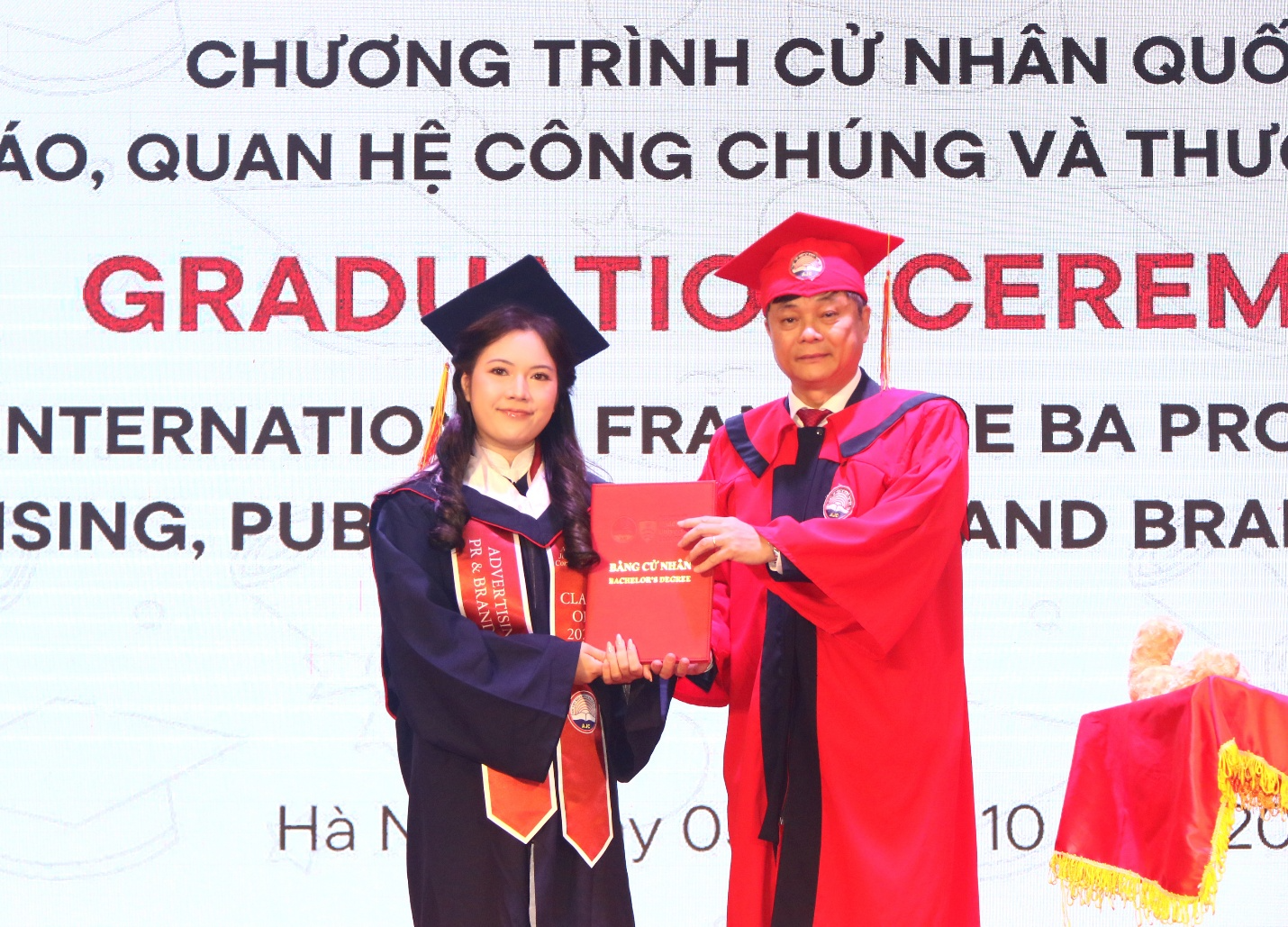 PGS,TS. Mai Đức Ngọc, Bí thư Đảng ủy, Chủ tịch Hội đồng trường trao Bằng tốt nghiệp cho các tân cử nhân Chương trình Cử nhân quốc tế Quảng cáo, Quan hệ công chúng và Thương hiệu khóa VI