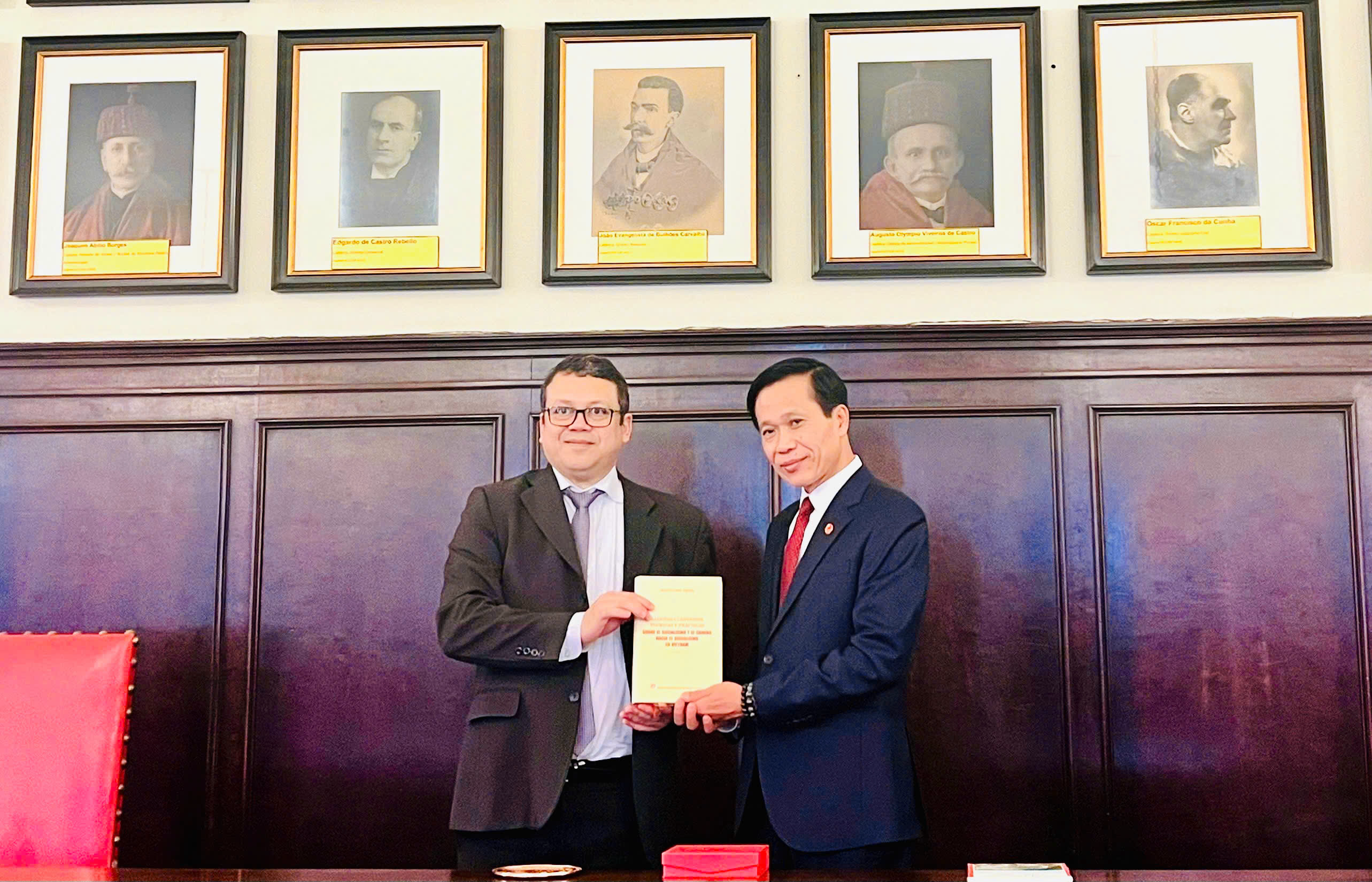 PGS, TS. Hoàng Phúc Lâm, Phó Giám đốc Học viện Chính trị quốc gia Hồ Chí Minh trao tặng Giáo sư Marilson dos Santos Santana cuốn sách “Một số vấn đề lý luận và thực tiễn về chủ nghĩa xã hội và con đường đi lên chủ nghĩa xã hội ở Việt Nam” của Tổng Bí thư Nguyễn Phú TrọngCác buổi làm việc giữa Đoàn và các chuyên gia UFRJ được tổ chức dưới dạng hội thảo học thuật chuyên sâu, tập trung vào các chủ đề lớn, thiết thực, phản ánh tầm nhìn hiện đại của Brasil về quản trị quốc gia và phát triển bền vững.