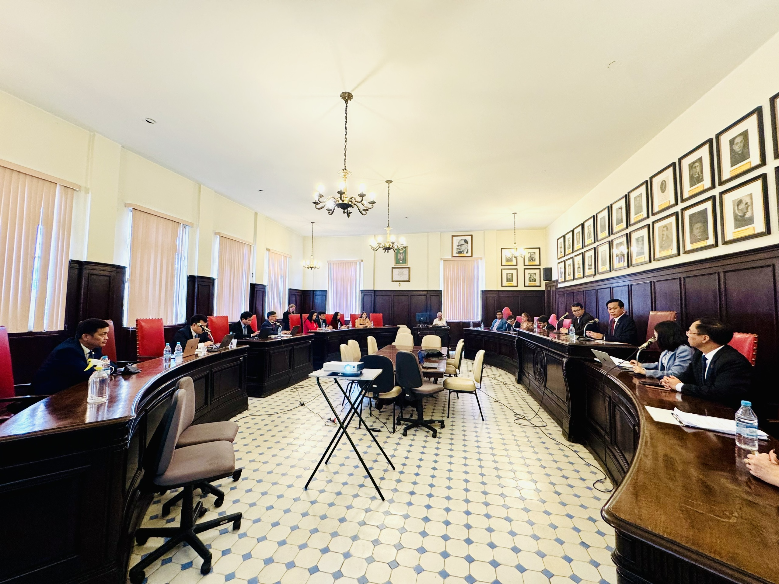 Ông Sidney Guerra, Chủ tịch Ủy ban Nhân quyền và Hỗ trợ Tư pháp thuộc Hội Luật sư Brasil (OAB), chi nhánh bang Rio de Janeiro, giới thiệu những định hướng nghiên cứu nổi bật của Đại học Liên bang Rio de Janeiro trong lĩnh vực Luật quốc tế, Luật môi trường và Luật về ứng phó với thảm họa toàn cầu, những chủ đề mang tính thời sự và nhân văn sâu sắc trong bối cảnh thế giới đối mặt với biến đổi khí hậu và khủng hoảng nhân đạo. Ông cho biết, các nghiên cứu đang được triển khai tại Phòng Thí nghiệm Nâng cao về Luật Quốc tế và Luật Môi trường (LEPADI) của UFRJ, gắn kết với nhiều mạng lưới học thuật ở châu Âu và châu Mỹ. Đồng thời, ông thông tin về Hội nghị quốc tế lần thứ Năm về Luật quốc tế trong thảm họa sắp diễn ra và mời các học giả Việt Nam tham gia, gửi bài cho tạp chí khoa học quốc tế Revista Inter, thể hiện thiện chí mở rộng hợp tác học thuật giữa hai nước.