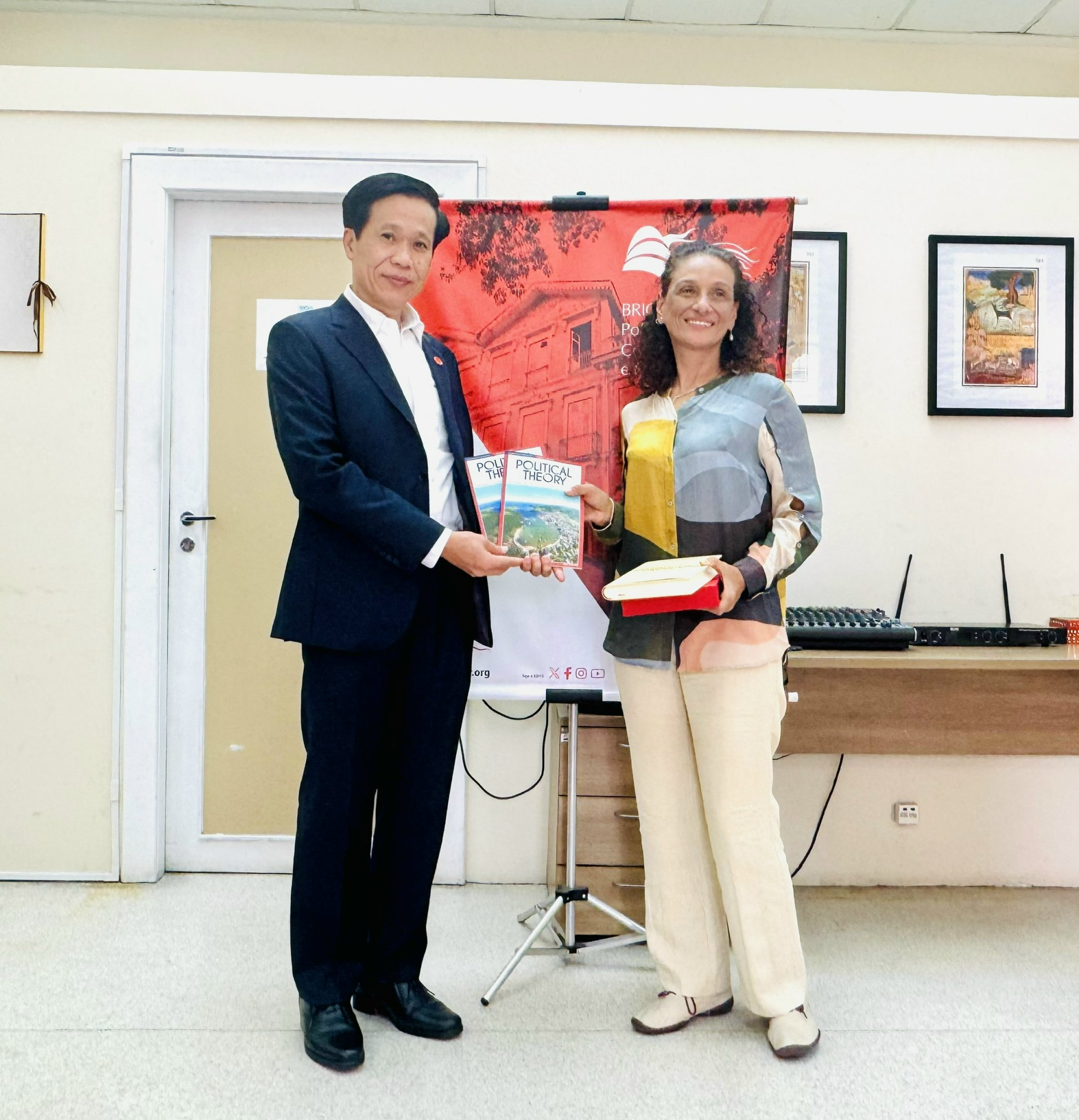 PGS, TS. Hoàng Phúc Lâm - Phó Giám đốc Học viện Chính trị quốc gia Hồ Chí Minh tặng quà của Đoàn cho bà Maria Helena Rodrigues, Phó Giám đốc Viện Chính sách BRICSThắt chặt kết nối văn hóa Việt Nam - Brasil qua những hoạt động, trải nghiệm ý nghĩa tại Rio de Janeiro