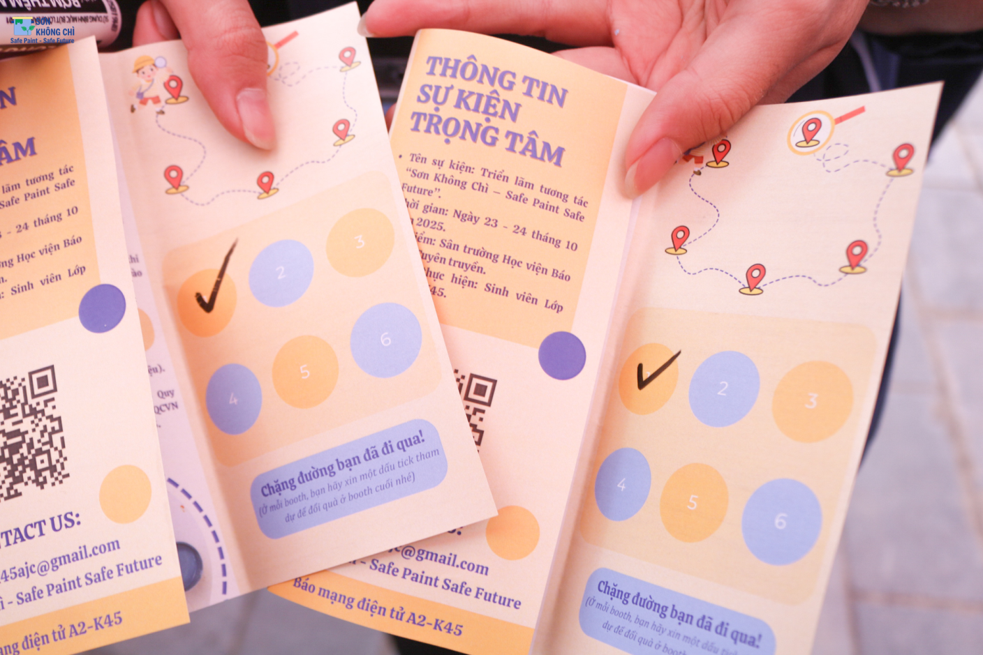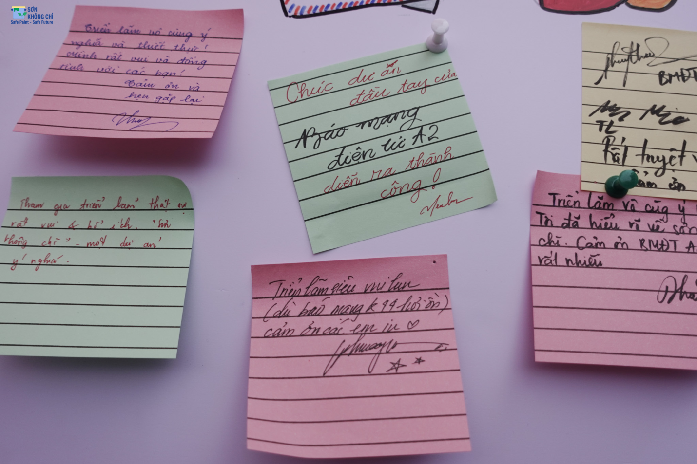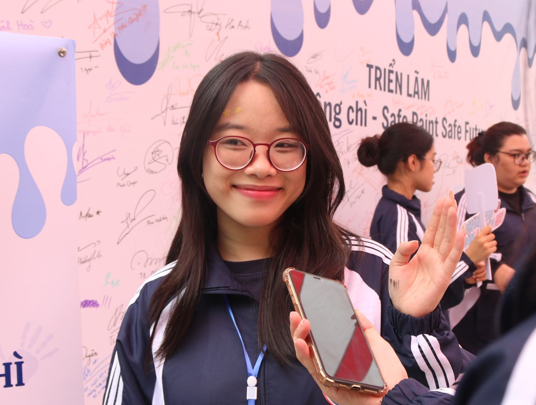 Sinh viên Bùi Ngọc Nhi, lớp Phát thanh K45 cho biết: “Triển lãm giúp mình nhận ra chì không chỉ độc khi ăn phải mà còn gây hại khi hít bụi sơn hay tiếp xúc lâu dài. Hoạt động này giúp mình nhận thức rõ hơn tầm quan trọng của việc chuyển sang sơn không chì.”