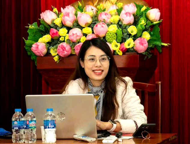 Bà Nguyễn Thu Hương, Tổng Giám đốc AZ Group trao đổi, hướng dẫn các đội thi về tư duy khởi nghiệp và mô hình kinh doanh