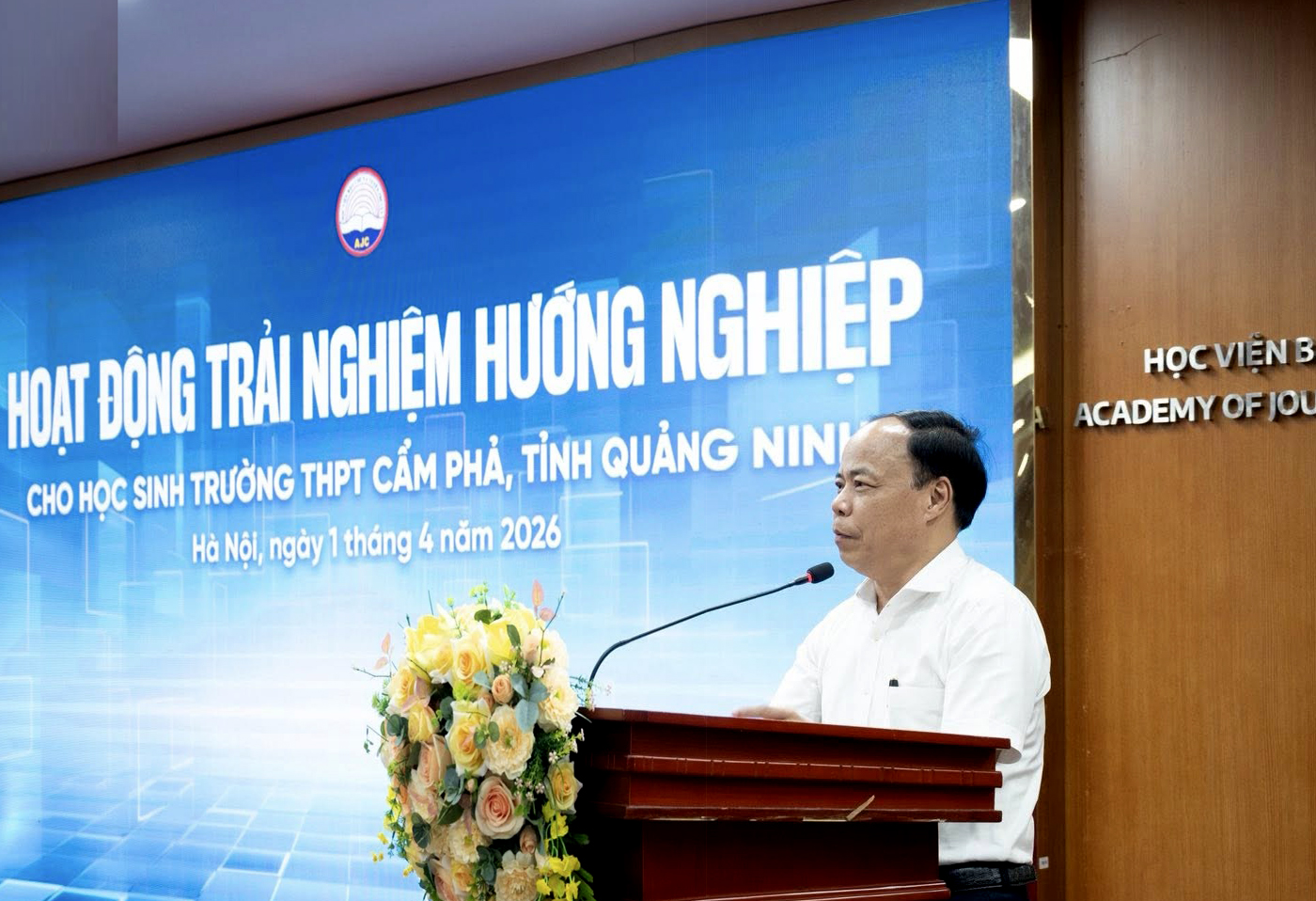 Chiều 01/4/2026, Học viện Báo chí và Tuyên truyền phối hợp với Trường THPT Cẩm Phả (Quảng Ninh) tổ chức chương trình trải nghiệm hướng nghiệp dành cho hơn 300 học sinh khối 12, với sự tham gia của các thầy cô giáo và phụ huynh.