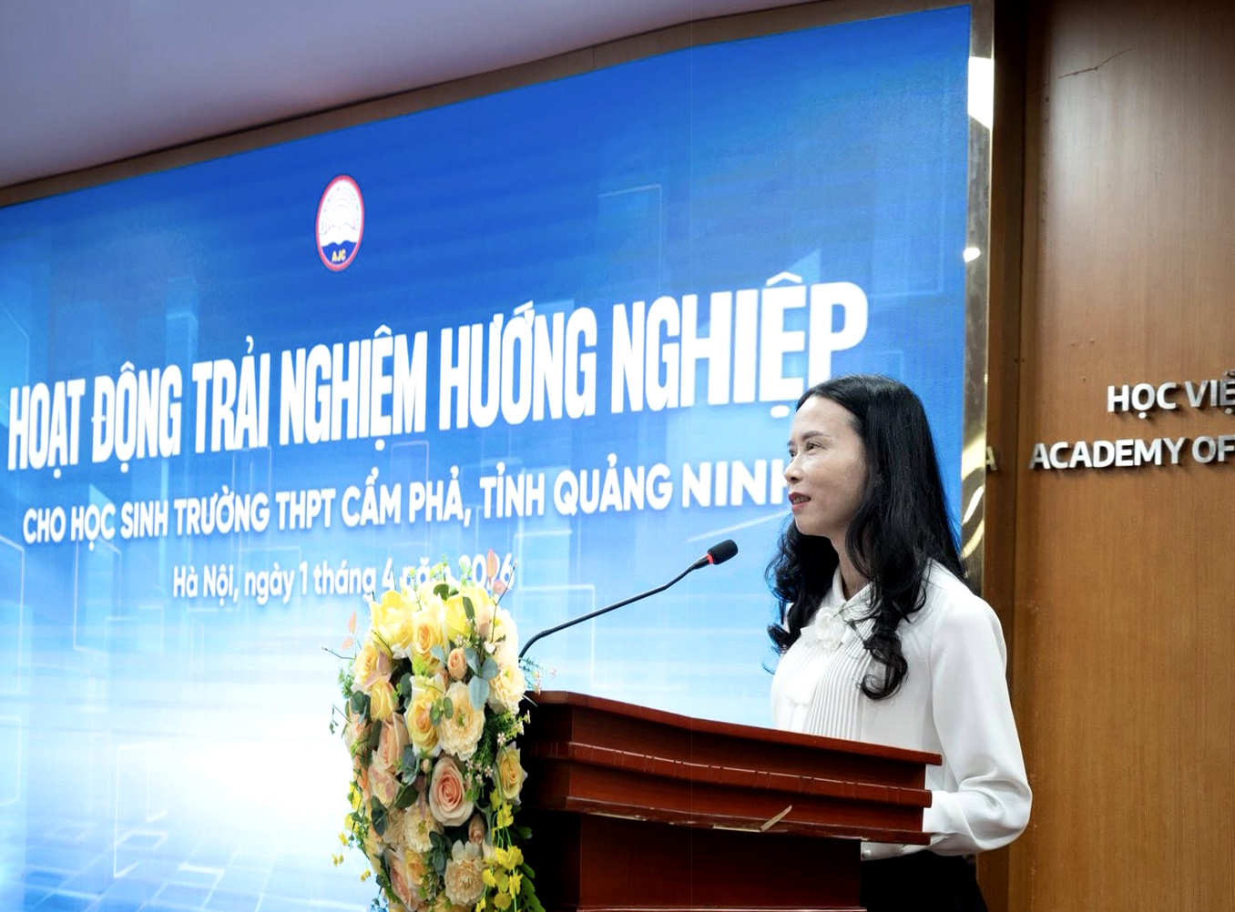 Đại diện Trường THPT Cẩm Phả, cô Mai Thị Hoà, Phó Bí thư Đảng ủy, Phó Hiệu trưởng nhà trường bày tỏ trân trọng trước sự đón tiếp chu đáo, nhiệt tình từ phía Học viện, đồng thời, đánh giá cao ý nghĩa của chương trình đối với học sinh cuối cấp.