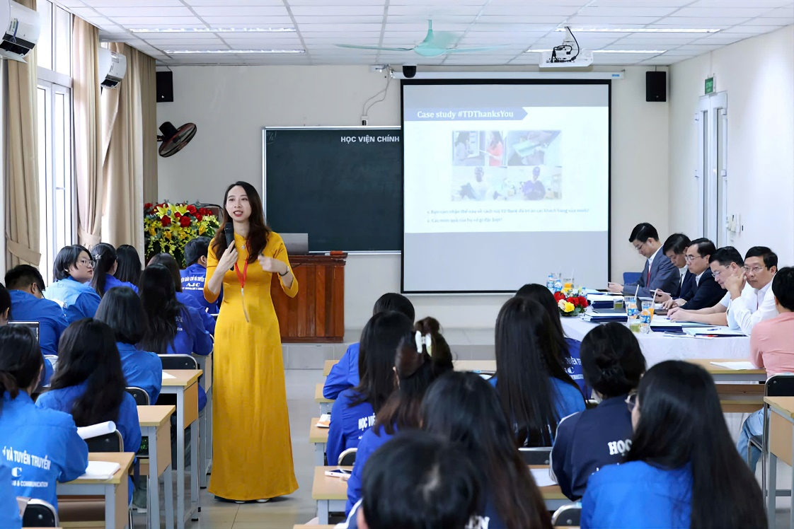 Nhìn lại chặng đường hơn 14 năm gắn bó với Khoa Quan hệ công chúng và Quảng cáo, cô không giấu được sự xúc động: “Tôi thật may mắn khi luôn nhận được sự tin tưởng, hỗ trợ từ Ban Lãnh đạo Học viện, các thầy cô trong Khoa và nhiều thế hệ sinh viên. Chính sự đồng hành ấy giúp tôi trưởng thành từng ngày.”