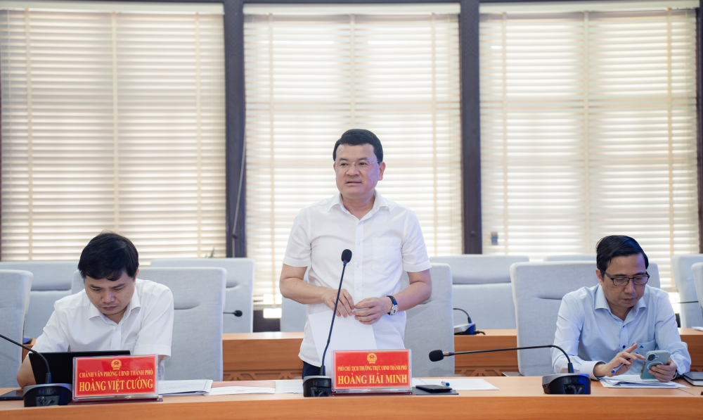 Phó Chủ tịch Thường trực UBND thành phố Huế Hoàng Hải Minh phát biểu tại buổi làm việc